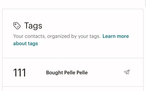 Now you have a group of customers uploaded to Mailchimp with a specific tag that you know meet specific criteria allowing you to target them with hyper-relevant marketing material. You find the customers in Mailchimp under Audience and Tags. Click the paper plane icon to create a campaign directed at the group.