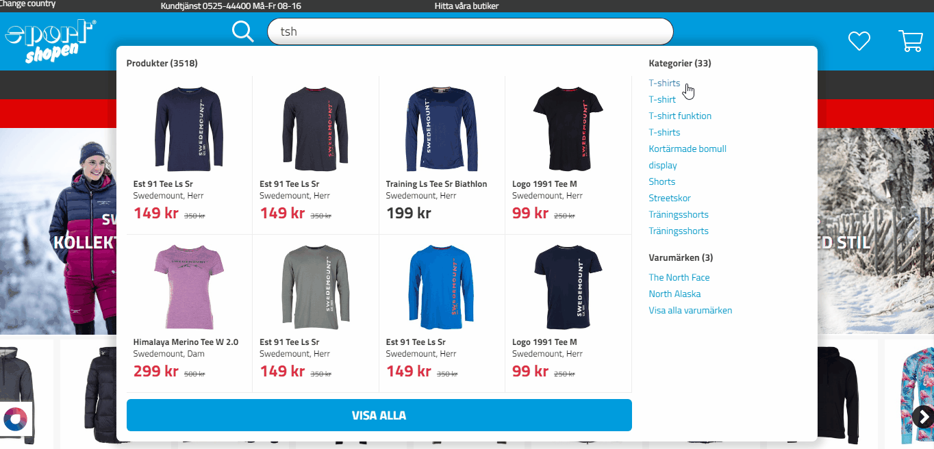 - Next, click on the search bar and execute some test searches by typing different search terms. By doing so, you can check whether the search term matches the products that are shown as results.