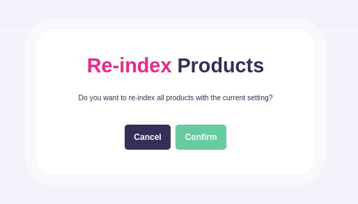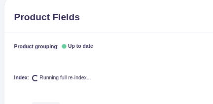 When you are ready, and clicking "Confirm" will close the pop up and the status of the index will start to spin with the text "Running full re-index..."