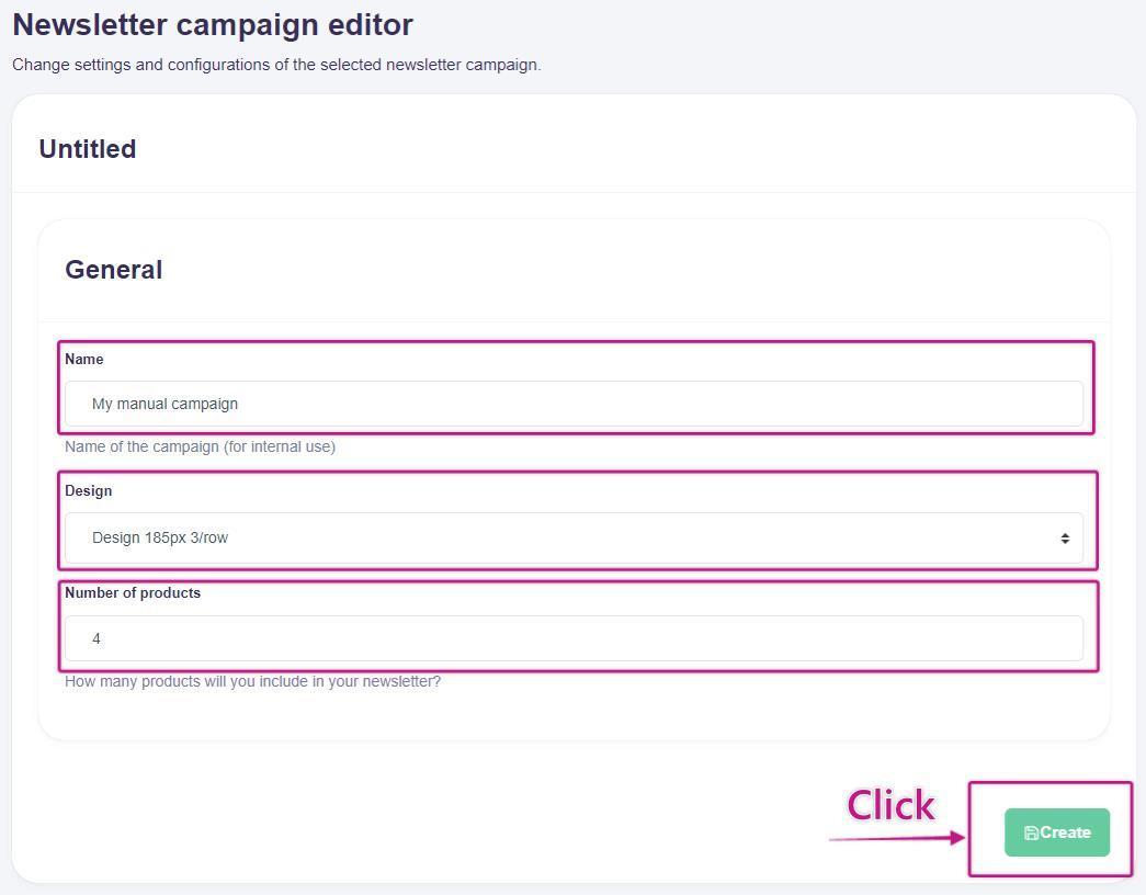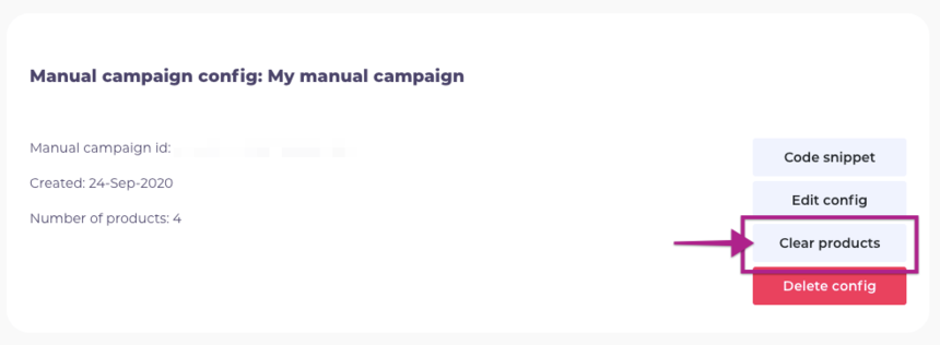 Note Be aware that this campaign type is meant for one-time use - if you send out a new newsletter with the same code snippet, the products will be the same.