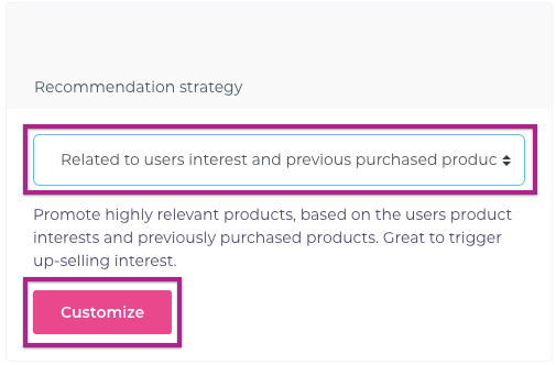 - If you click Customize, then you can create your own recommendation strategy with various steps. The first step will have the highest priority.