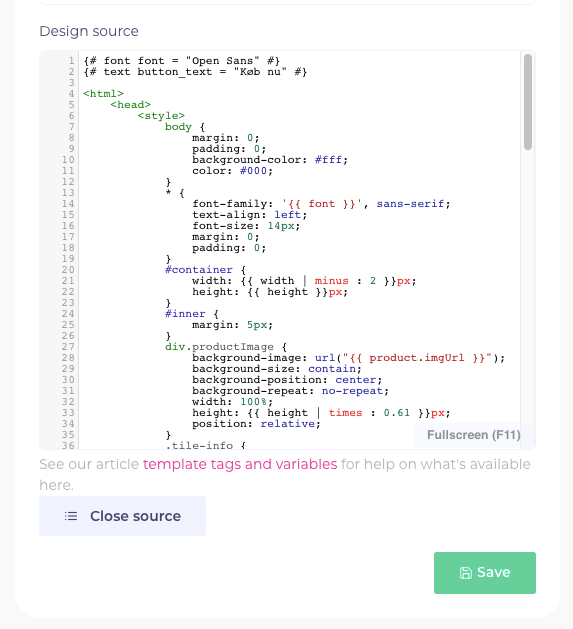 If you are familiar with HTML, you can switch to the “Edit source” mode. By doing so, you can then alter the source code used for generating the product recommendations in newsletters and emails.