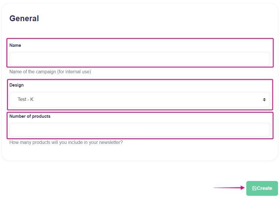- Name: Choose a name for your campaign, e.g. "Christmas campaign" or "Weekly newsletter, week 50"