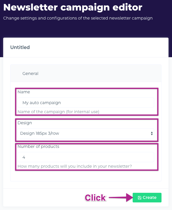 This code snippet has to be copied into the template in your newsletter platform. Then a campaign will automatically be created every time you send out a new newsletter using this specific template.