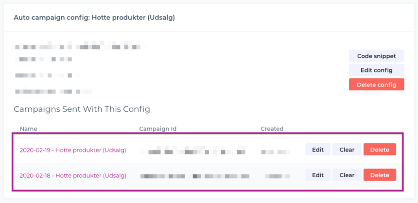 Once you've sent out the first newsletter using this new Auto campaign config, you'll find a list of all the automatically created campaigns nested inside the specific Auto campaign config.