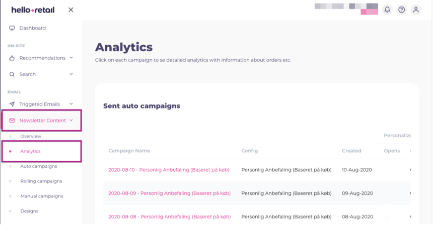 - Start by logging into your Hello Retail account. On the dashboard view, navigate to the left-hand side menu. Under the Emails section, click on Newsletter Content to unfold the drop-down menu.