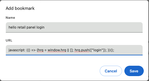 (() => {hrq = window.hrq || []; hrq.push(["login"]); })();The following shows how to create a bookmarklet in chrome: - Open the bookmarks settings page by entering the following url in the address bar: