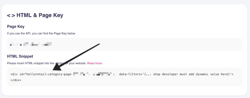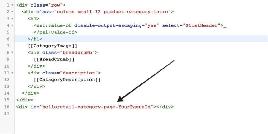 Below is an example of a file with the Pages snippet inserted – you can find the div you need to insert under your Pages Configurations.
