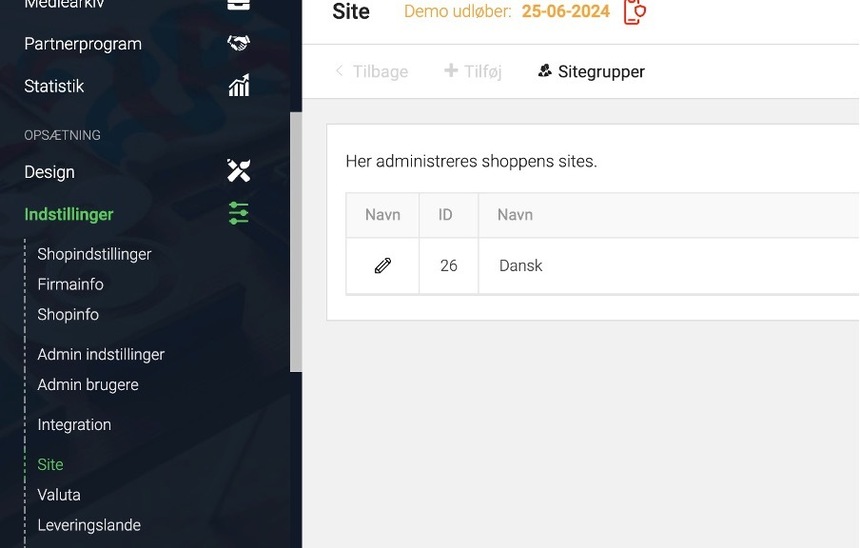 - Navigate to "Indstillinger -> Site" in your DanDomain Classic admin panel.