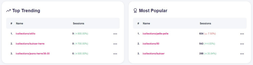 Top Trending shows you the top three pages and the number of sessions for them, accompanied by the percentage ratio compared to the previous period.
