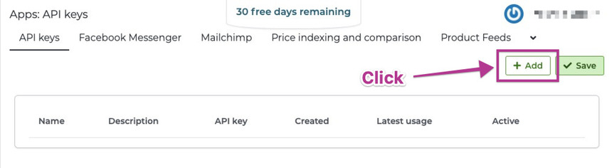On the next prompted page then click on the Add button to add a new API key.