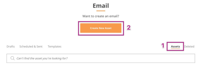 Log into you Apsis One account and go to Email. Here you will create a new Asset under Asset -> Create New Asset.