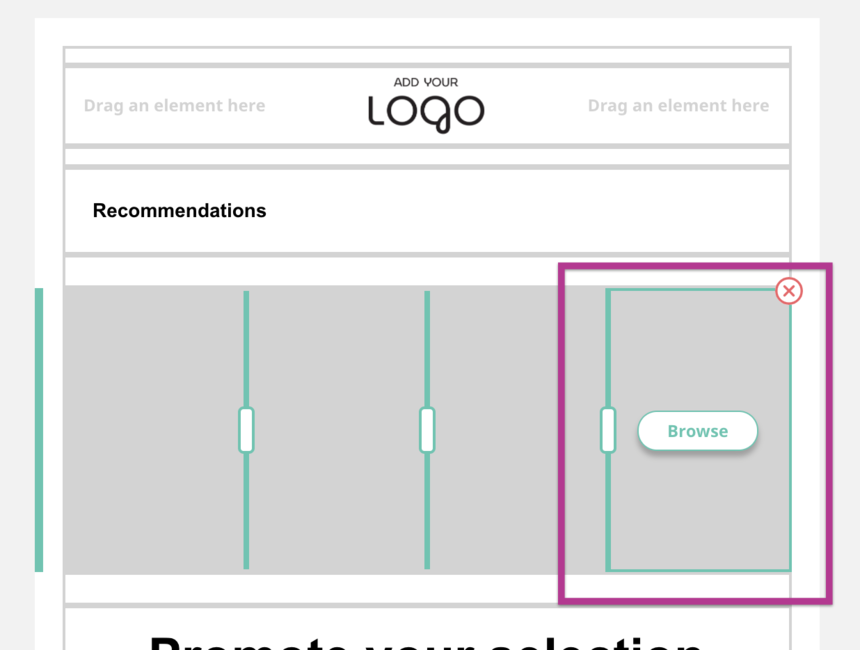 By default, the Asset will include four Product Recommendations. You can easily remove a Product Recommendation by clicking one of the grey boxes and click the red cross. You'll then have to resize the remaining three boxes to fill the width of the newsletter.