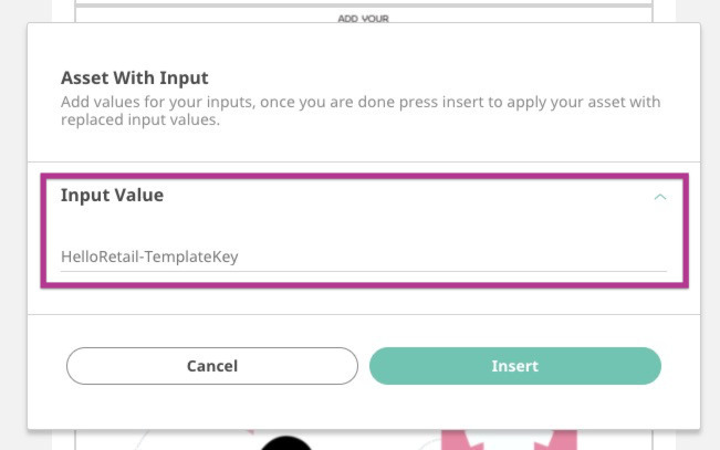 As soon as you do, you'll see a popup asking for a Hello Retail Templatekey. This is a key that will link the new Asset with your Hello Retail Newsletter campaign. When linked, the Asset will automatically fill with personalized product recommendations generated by Hello Retail.