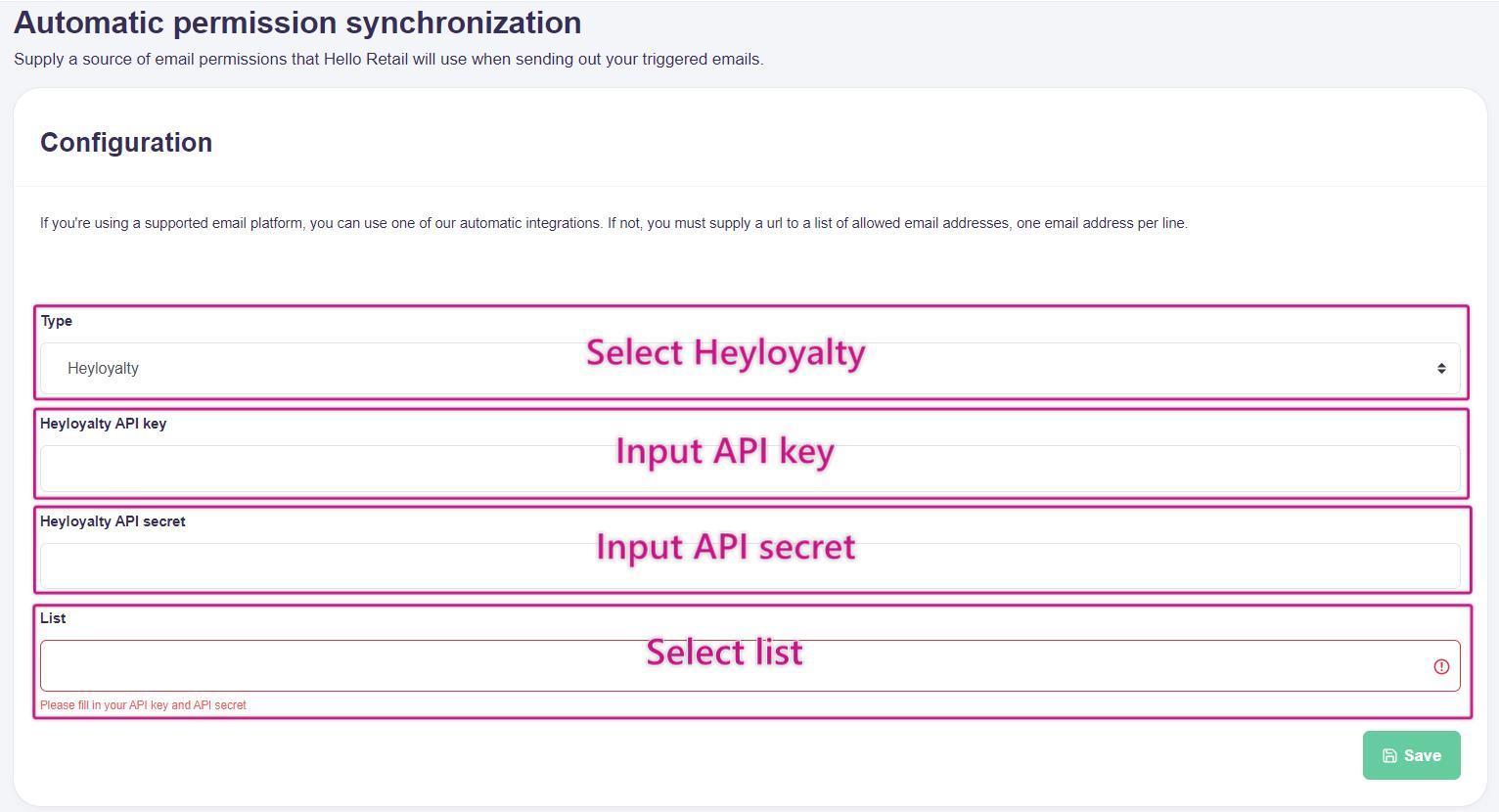 Step 3: Your setup is complete. Hello Retail will automatically synchronise HeyLoyalty list permissions once per day.