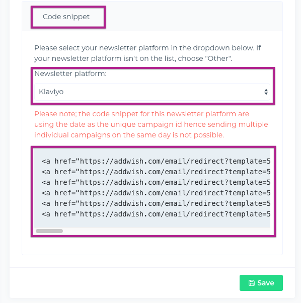 Here's a simple guide on how to add your newsletter content code snippet to Klaviyo.