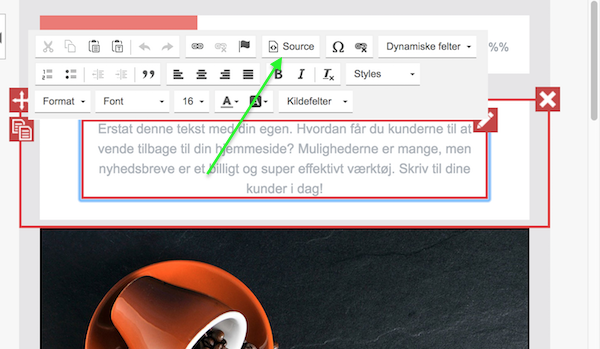 Step 1: Once you are logged in and in "edit mode", you can edit or add a textbock - and then choose to enter the "Source" mode:
