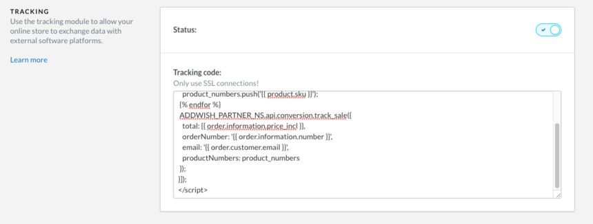 While still in the Settings > Web extras, Insert the conversion tracking in the "TRACKING" section.