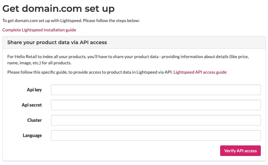 Our new API based feeds for products, categories and orders are easy to get up and running - all you need is to get an API key + API secret from your Lightspeed representative.