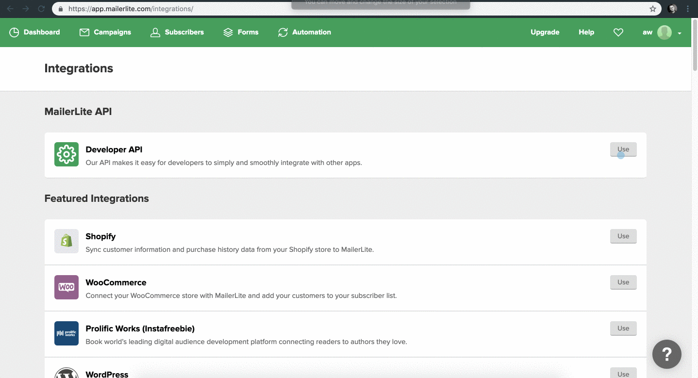 Getting the API Key from MailerLite¶