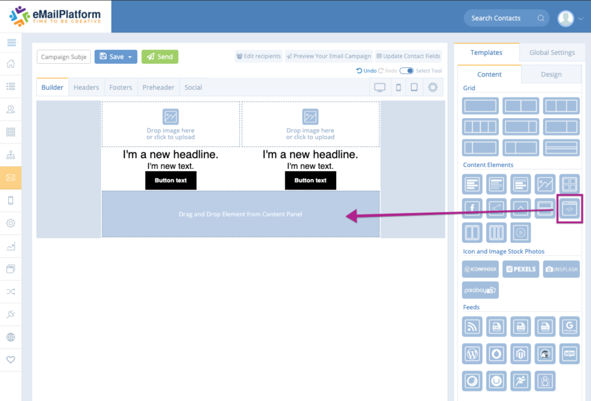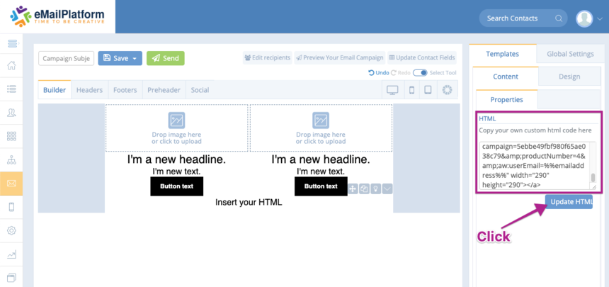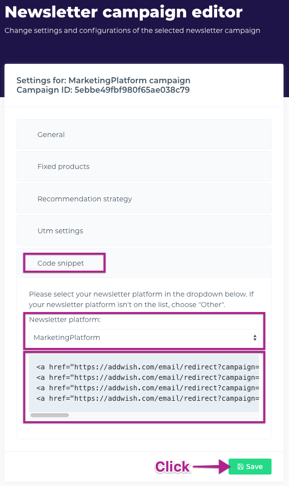 Lastly, you will input a piece of code from Hello Retail into your newsletter in MarketingPlatform.