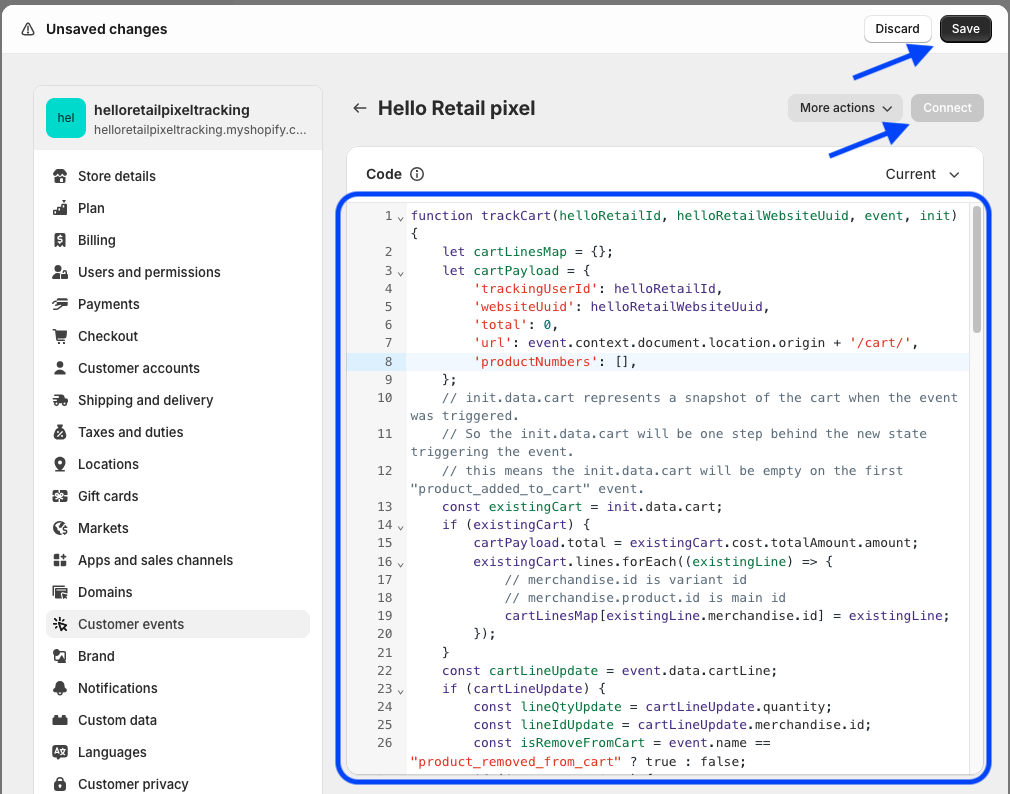 Inserting the Hello Retail tracking pixel:¶