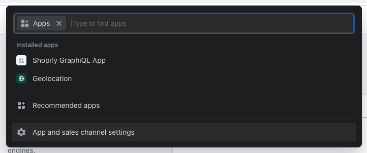 - On the dashboard view, navigate to the left-hand side menu. Click on Apps -> App and sales channel settings