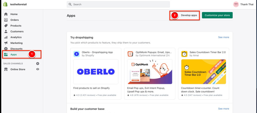 - Inside this window, click on the Develop apps button.
