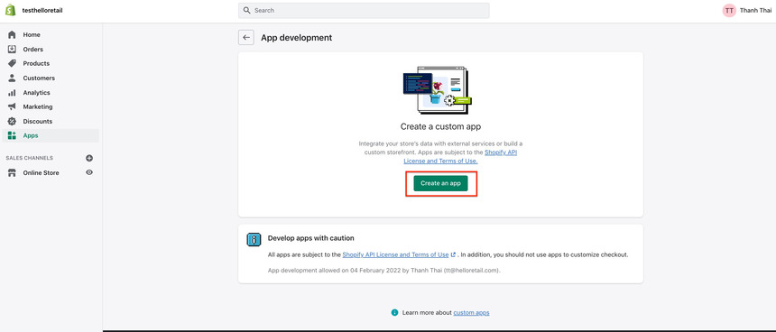 You have to create a private application for Hello Retail. If needed, you can also read Shopify's own documentation on custom apps here.