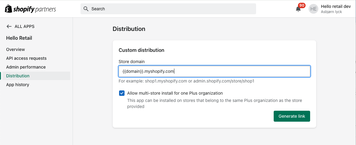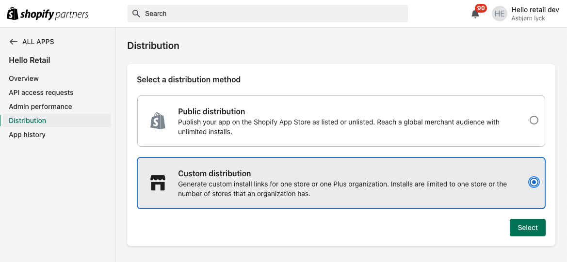 You must create a private app for Hello Retail. If needed, you can read Shopify's documentation on custom apps here.