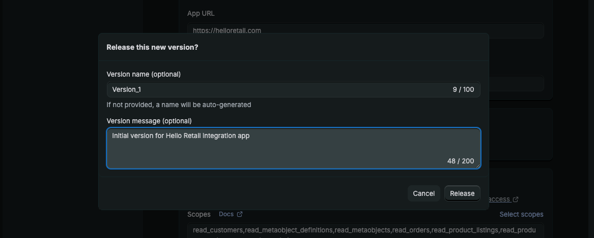 7. Click Release on the top right corner of the page, which will open the following pop-up.