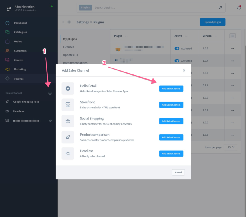 Once the plugin has been required using composer, installed and activated using bin/console, it's time to add the new Sales Channel.