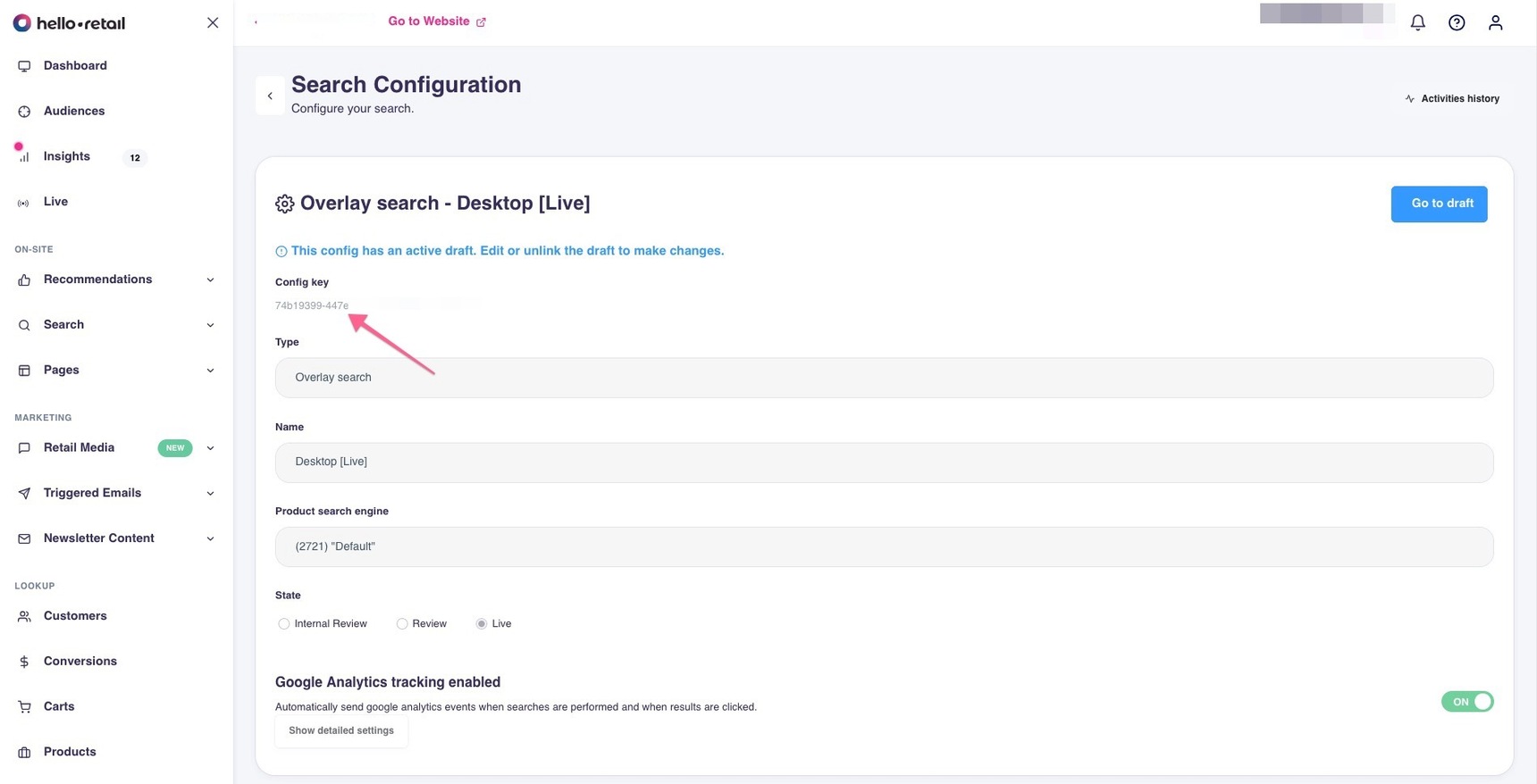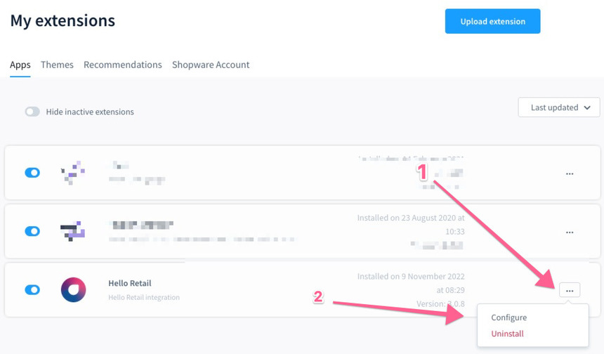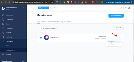 Extensions > My Extensions > Search for "Hello Retail" > Click the three dots > Select "Configure"