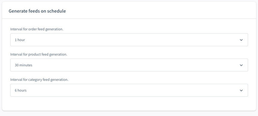For each feed (Orders, Products & Categories), select the frequency you want the feeds to be updated with.