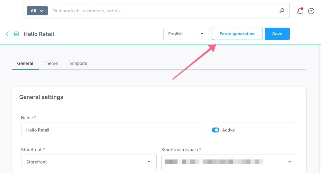 Click "Force generation" to create the initial XML files needed for setting up Hello Retail.