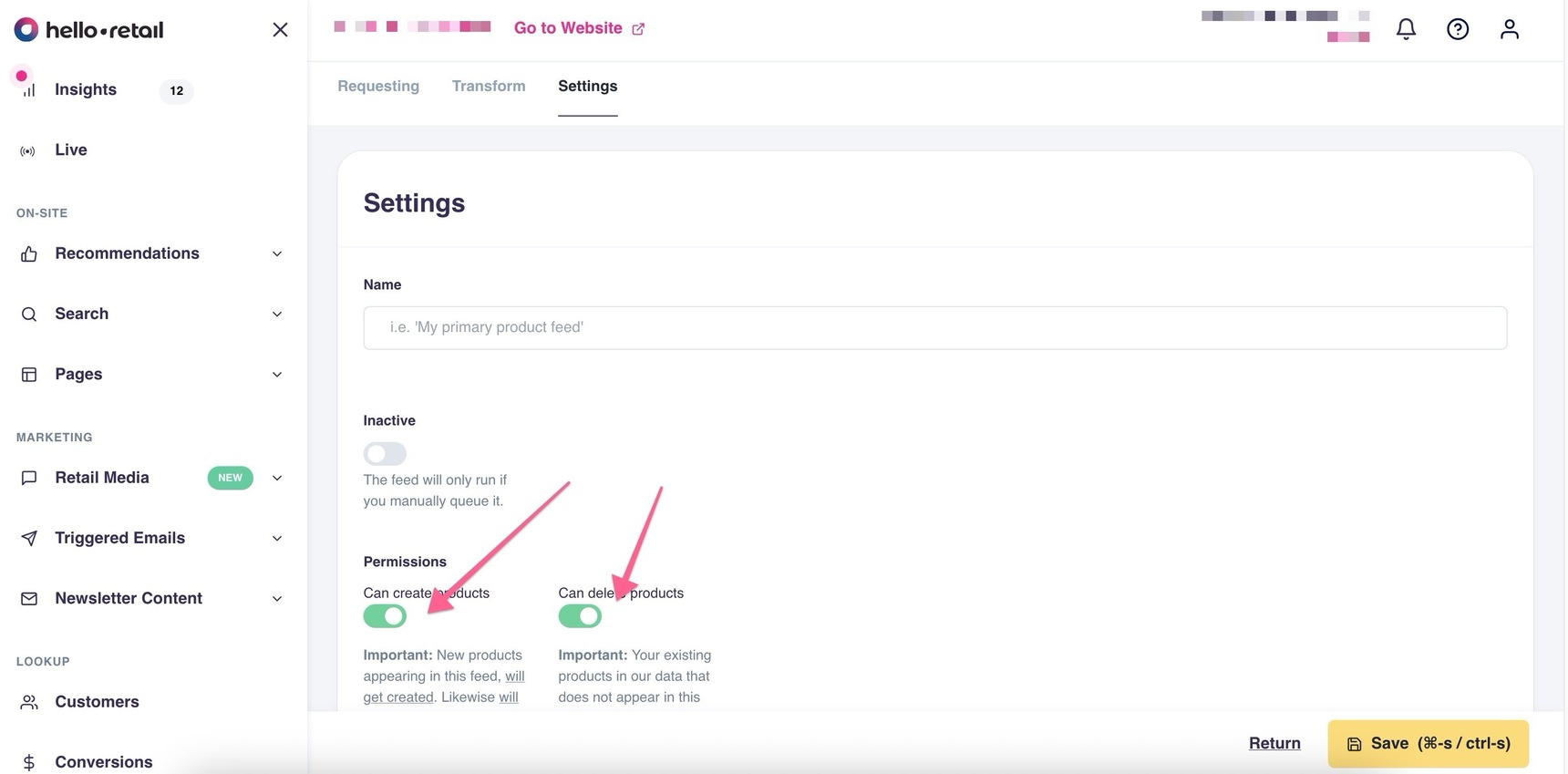 For content and order feeds, please send both URLs to support@helloretail.com, and we’ll assist you with the setup.