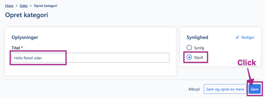Give the category a suitable title and make sure it is hidden. Click Gem.