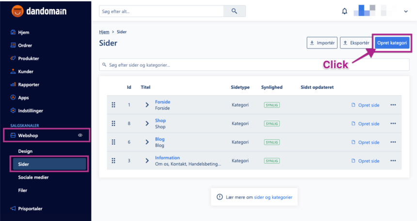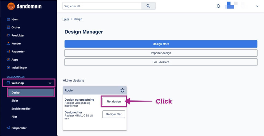 - Log into your SmartWeb Webshop admin account: https://webshop-admin.scannet.dk/.