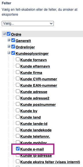- Ordre - Kundeoplysninger - Kunde e-mail