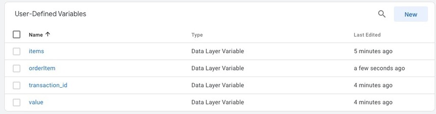 Step 1: Ensure the following User-Defined Variables are defined in GTM with the following "Name" and "Data Layer Variable Name":