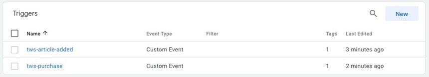 Step 2: Next step is to make sure the following Triggers are defined with the following "Name" and "Event name":