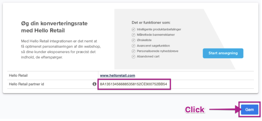 Wannafind and Hello Retail work perfectly together. To make it very easy for you, Wannafind has a Hello Retail app that will make installation quick and easy. Follow the guide below to get started.