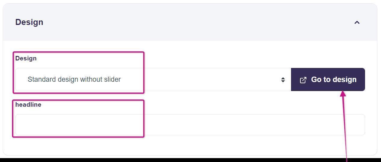 Step 4: In the "Design" section you can choose one of the standard designs available and edit simple texts like headlines etc.: