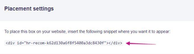 Step 5: In "Placement settings", you can find the details on how to add the box to a page or template of your webshop: