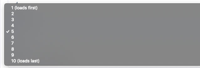 The load order can be set going from 1 to 10 where 1 equals to what will be loaded and prioritized first and where 10 equals to what will be loaded and prioritized last.
