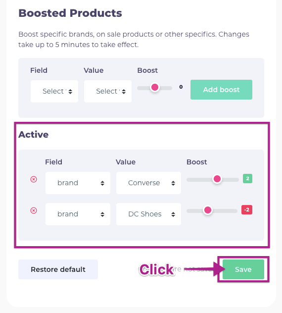 Boosts will allow you to tweak the results presented to the visitors on your webshop when searching your site.