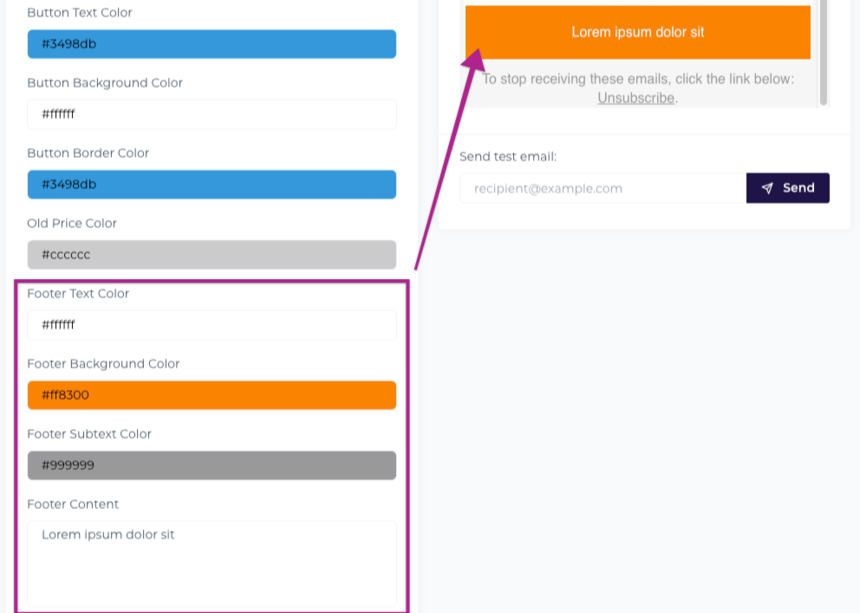 Also, remember to change the footer color and content. Often you can just copy/paste the footer content directly from your site.