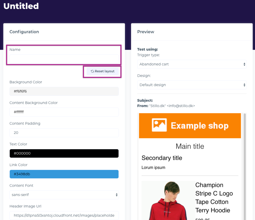 The base design will be wrapped around every triggered email, so this is where you insert the company logo, define the general colors and so on. You can read a bit about the overall design of triggered emails here.