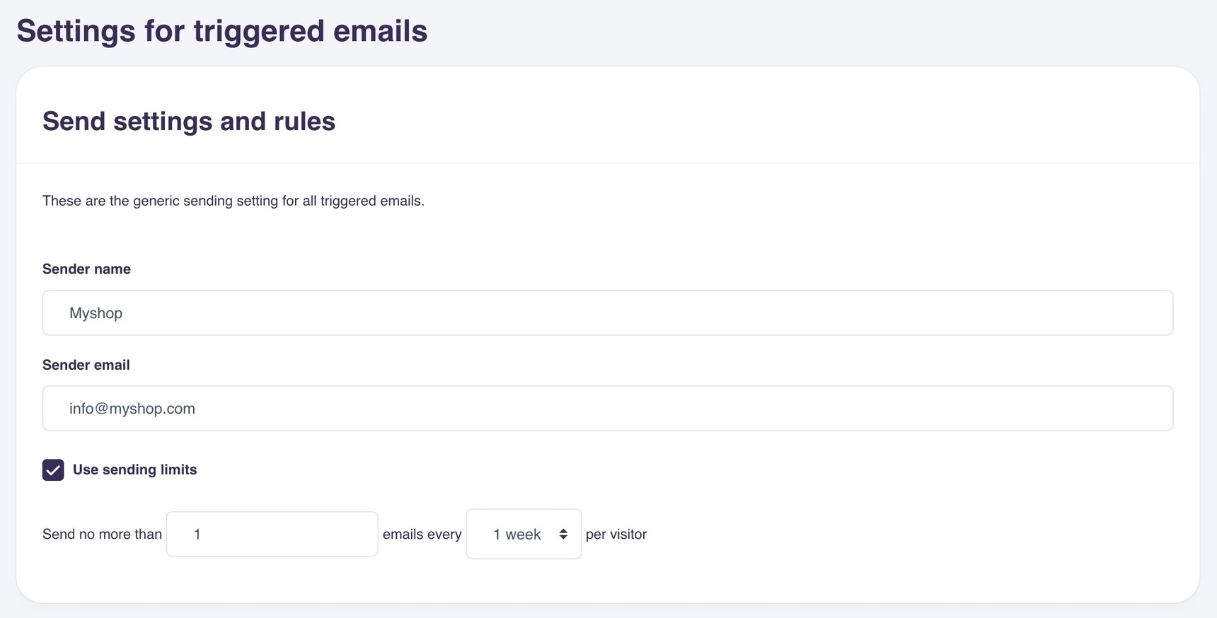 The sending domain will appear, to the individual recipients of the Triggered Emails, as being your own top-level domain - e.g. myshop.com, but we require that a subdomain, triggers.myshop.com, be created on your end.