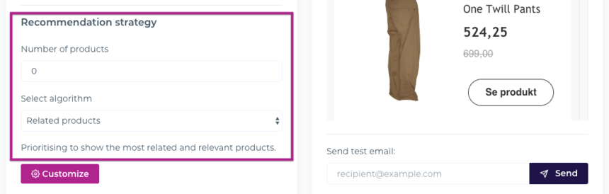 4. You can also add additional product recommendations to the email, and you can specify how many and what recommendation strategy to use.